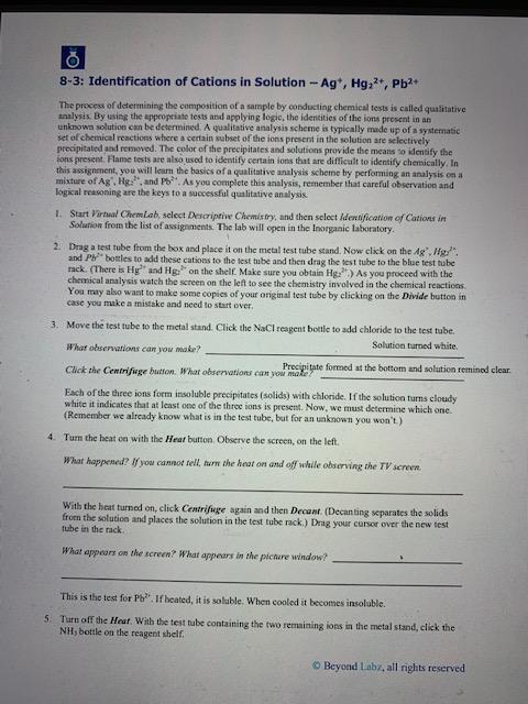 Для просмотра онлайн кликните на видео ⤵. I need help with this virtual lab. Chemical engineering questions and answers. In there you will be able to find the answer keys for the different labs and you'll find the inorganic qual unknowns in the higher ed chemistry answer key. See more of beyond labz on facebook.